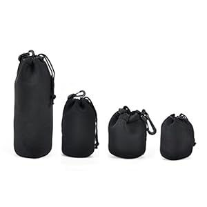 Able® 4 pcs Black DSLR camera Drawstring Soft Neoprene Lens Pouch Bag Cover for Sony Canon Nikon Pentax Olympus Panasonic