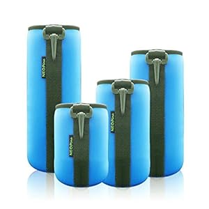 4 Pack Neoprene Camera Lens Protective Bag Lens Pouch Kits for Canon Nikon Pentax Olympus Sony FujiFilm Camera Lens - Aqua Blue