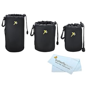 3-Pack Soft Lens Pouch for DSLR Lenses (Small, Medium and Large) f/ Canon, Nikon, Pentax, Olympus, Sony, Panasonic, Nikkor w/ Dr