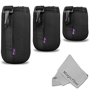 3 Pack Neoprene Soft DSLR Lens Pouch Case Kit For Canon Nikon Sony Pentax Olympus Panasonic and Blackmagic Pocket Cinema Camera